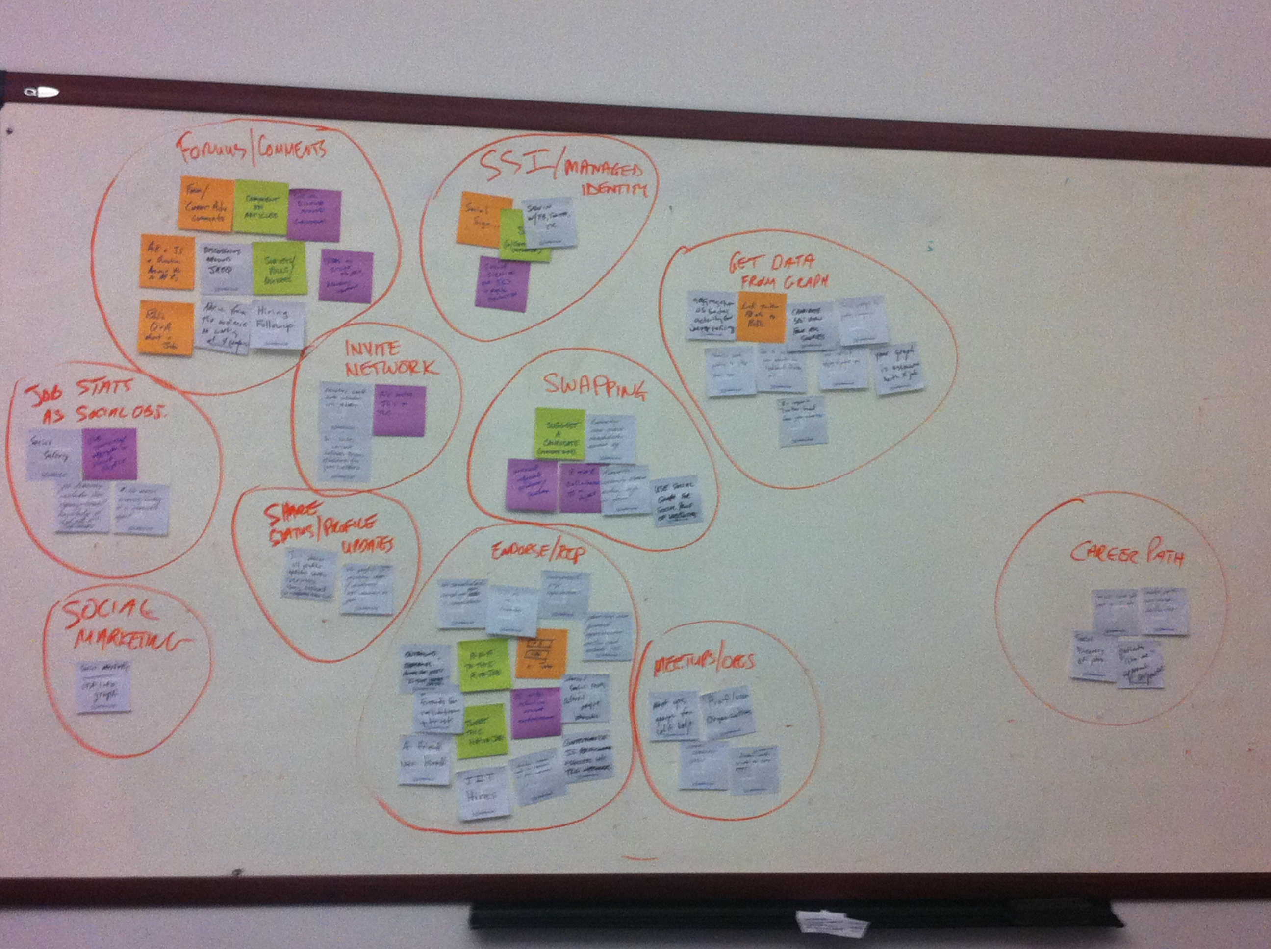 The plan was to break here and move straight into the sketching portion of the exercise but at 2 hours, we ran out of time for this meeting. We schedule part two of the exercise for two days later and allocated another 2 hours to it.